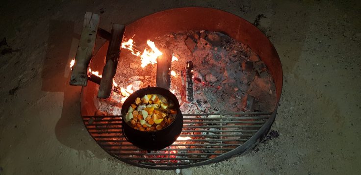 מיקמנו את האוהל, והתחלנו בהכנות לפוייקה. הפעם, בשונה מהמתכון שאנחנו בד"כ מכינים, השתמשתי בקולה (!!!) כי לא היה לנו את הלוקסוס הרגיל שיש בטבע.