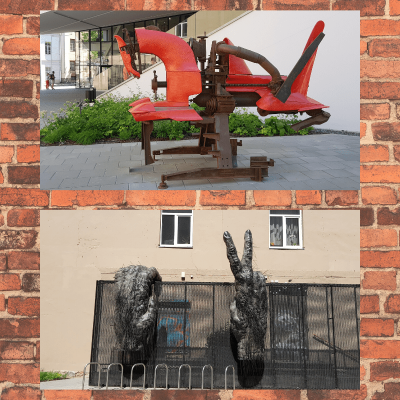 יש הרבה גלריות בוילנה. הנה מספר תמונות מיצירות שראיתי בחצר של המוזיאון MO Museum.